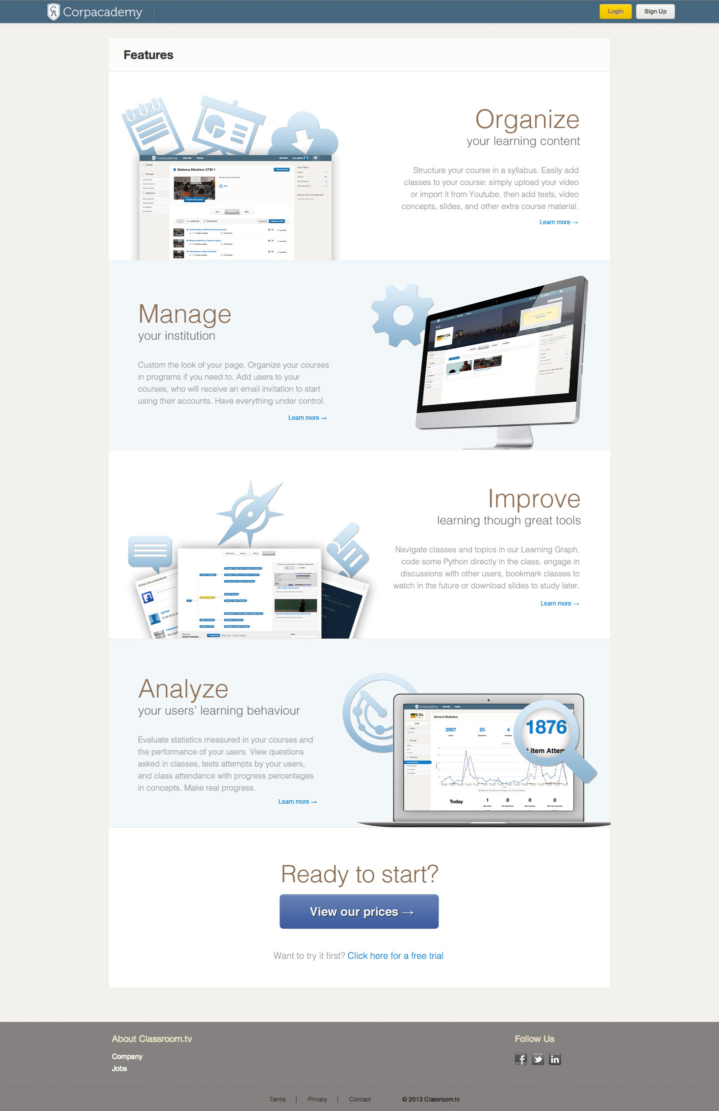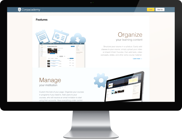 Corpacademy is an educational social platform for companies, providing a modern and easy way to improve your company's knowledge.